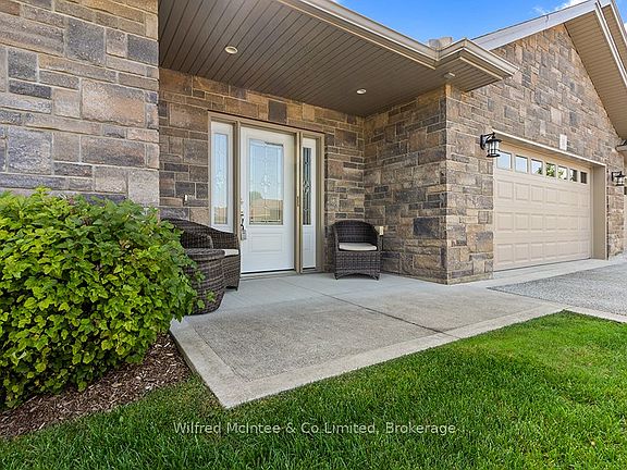 Discover refined living at 246 Grey St - Unit 32, a stunning end-unit townhome in the sought-after Grenville Estates condo community. This single-level bungalow seamlessly blends modern elegance with thoughtful design, offering a spacious one level layout perfect for relaxed, upscale living. Step into a bright foyer featuring a large closet and convenient access to the double-attached garage. The open-concept main living area welcomes you with 9-foot ceilings, recessed lighting, and plenty of windows that flood the space with natural light. The heart of the home is an elegant kitchen, featuring timeless white shaker cabinets to the ceiling, luxurious quartz countertops, stainless steel appliances (with hook up for a gas stove), and a breakfast peninsula ideal for casual dining. The adjacent dining area comfortably accommodates a larger dining set and hutch, while the living room exudes warmth with a contemporary wall-mounted gas fireplace, creating a cozy yet modern ambiance. Patio doors lead to an impressive 10ft x 48ft concrete patio, complete with gas BBQ and fire bowl hookups. The primary bedroom offers his-and-hers closets and a generous ensuite bathroom with a spacious shower, ample cabinetry, matching quartz countertops, and in-suite laundry. A bright second bedroom, a versatile den, and 3-piece bathroom complete the living space. This condo was built with many upgrades in mind and has plenty of noteworthy features, including a heated double garage with a utility sink and extra insulation, a concrete driveway with parking for two vehicles, in-floor radiant heat throughout, central air conditioning, and a stylish long lasting stone/brick exterior. This lovely condo community is tucked away in quiet area of town yet close enough to all the towns amenities, whether it be a short bike ride downtown or a leisurely stroll to the beach. You will appreciate the pride of ownership that is shown throughout the home and the community.