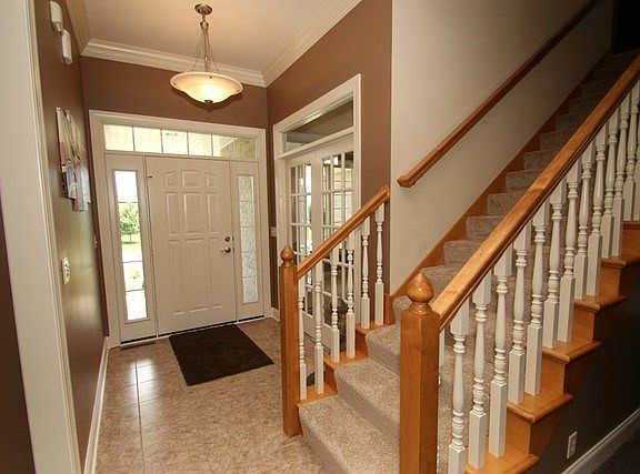 Golf course community, the stunning home is ready to move in and enjoy. White trim, great use of colors, this home flows. French doors to the dining room. Two sided fireplace, enjoy in the great room or while sitting in the kitchen. 1st floor Master suite with private bath with whirlpool, double vanity, Make-up area & walk in closet.Finished lower level with wet bar, entertaining area, office, 1/2 bath and lots of storage. The impeccable landscape done in 2016 is gorgeous, Brick paver patio with built in grill and bar area. Perfect flow for entertaining guests inside and outside. New Roof 2014. New Windows 2015 New Central Air 2017