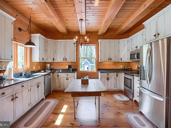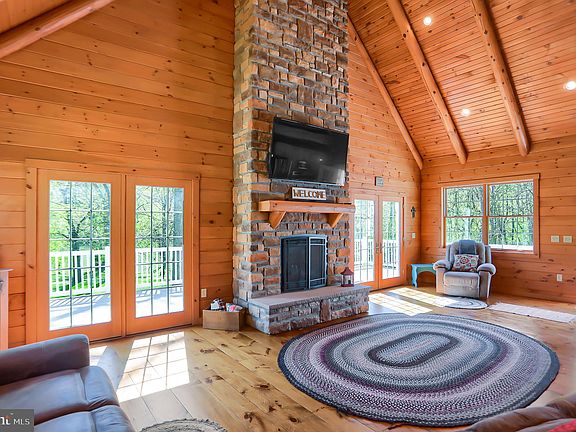 Hurry, call the bank! The property you've been looking for is here! This stunning home sits on three parcels totaling 5.38 acres, including 406 feet of water front views you won't want to miss. Built in 2010 with hand carved beams, wide plank flooring and a huge stone fireplace that is powered with propane. The first floor consists of two bedrooms with closet space, a full bathroom and a laundry area. Beautiful custom kitchen equip with a stove, fridge, dishwasher and plenty of counter space. The spacious loft includes a half bath and allows for plenty of extra sleeping room or additional living space. Two mini splits were installed, one upstairs and one downstairs for convenient temperature control. French doors on either side of the fireplace allow for easy access to the deck, with perfect views of the backyard and river. Basement access is around the back of the property, one garage door and a double door entrance. Plenty of storage space and doubles as a garage. Entertainment for the entire family, including RV/camper hooks-ups, a gorgeous pavilion with electricity, boating access and even an outhouse for large gatherings or everyday use. Tasteful retaining walls, landscaping and a paved driveway giving outstanding curb appeal. This property could be used as a primary residence or vacation home. You even have the option to build another house on one of the separate parcels. It is not located in the flood zone. Schedule a showing, make an offer & enjoy this summer in your new home!