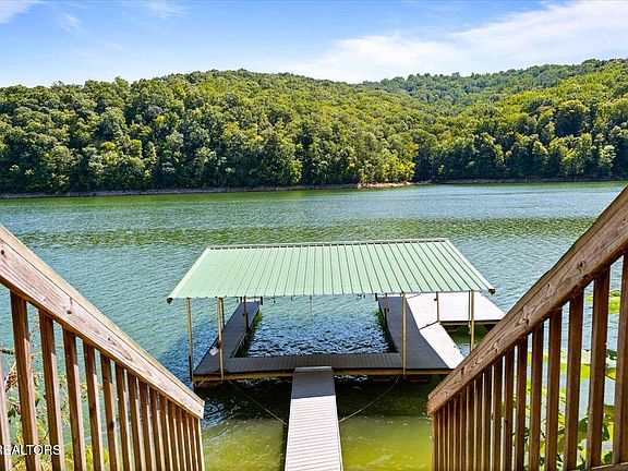 The home comes fully furnished and features 5 bedrooms, 4.5 baths, cathedral ceilings with a wall of windows overlooking Norris Lake, hardwood maple floors, granite countertops, and custom cabinetry.