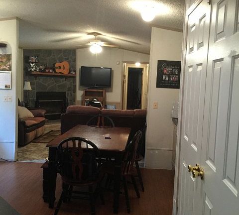 Always wanted a nice quite camp or home on the river? This mobile home is anchored on top of 21 concrete pillars with a deck that wraps around most ofthe home for a good view of the river. It is currently is being used as a 2 bedroom 2 bathroom home, because the smallest bedroom has been convertedinto a closet. This means lots of storage space and great if using for a camp! There is a ice maker that stays in the home as well as an industrial ice makerthat is staying in the storage room outside. Lots of good room to enjoy the river and lots of places to sit and enjoy the view.
