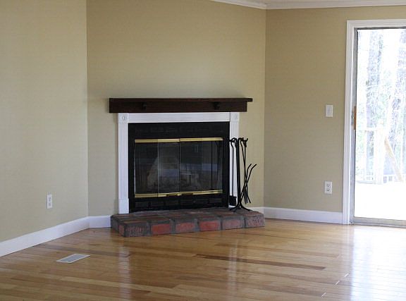 open floor plan and totally remodeled from the studs out. Hardwood floors in all rooms except Kitchen, laundry and bathrooms have tile. Nice kitchen with all stainless steel appliances, Refrigerator, range, microwave, and dishwasher. Sits back off the road in a quiet peaceful setting. Wood burning fireplace in the living room.