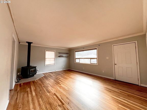 Construction completed!! Including Bathroom surround, finished original hard wood flooring, new porch and removed shed. Built in 1958 and offering 936 sqft this home has 2 bedrooms, 1 bathroom and large living room. Heat your home with the oil furnace or Blaze King certified wood stove. The property sits on a .14-acre lot, backs up to year round Canyon Creek and is conveniently located within close proximity to a gas station, coffee shop, school, and courthouse.