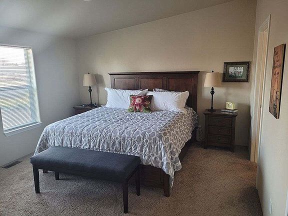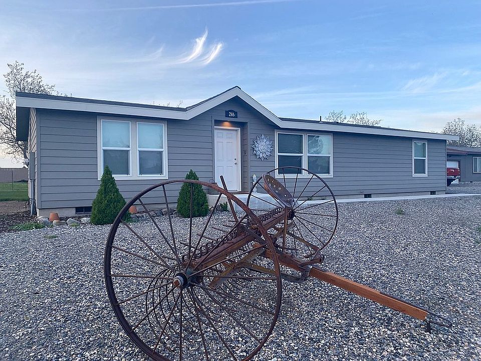Newer three bedroom 2 bathroom home with separate two car garage. Home has a large concert patio, with concrete sidewalks to garage and house. Has a private landscaped yard with in ground sprinklers. Located on a quiet dead end cul-de-sac at the west side of town. Home has ample off street parking and room for RV as well.