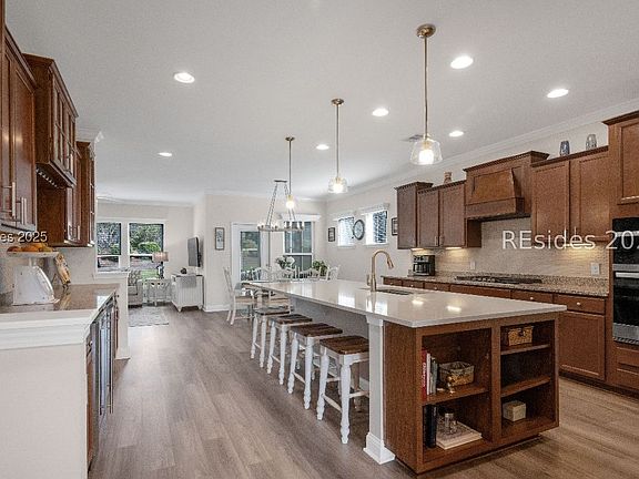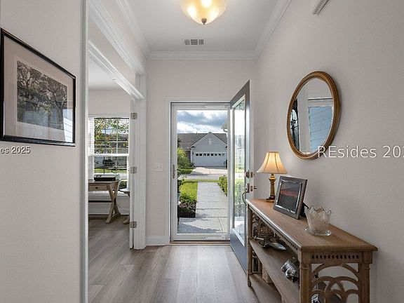 Stunning Castle Rock model featuring 2BD/2BA + Front Office/Den with a host of beautiful updates! Arrive at the extra wide epoxy driveway & walkway, that opens through the glass door to a light-filled open floor plan, perfect for entertaining or relaxing. This home showcases Brand New LVP flooring, Hardiplank siding, a new stainless steel oven/microwave combo, and stunning New Quartz Island Counter in the spacious kitchen. The Gourmet kitchen features soft-close cabinets w/pull-outs and under-cabinet lighting, plus Two wine coolers and a walk-in pantry! The Vinyl/Screened lanai with Hard Roof, & Mini Split A/C offers a peaceful retreat, while the Walk-Up Attic provides excellent storage. Crown molding in the living area, new GE Profile W/D and a Tankless Rinai water heater round out the amazing upgrades. Located in the heart of Sun City Hilton Head, a 55+ Active adult community, this home combines modern updates with the comfort and convenience you've been looking for! Garage Fridge conveys!