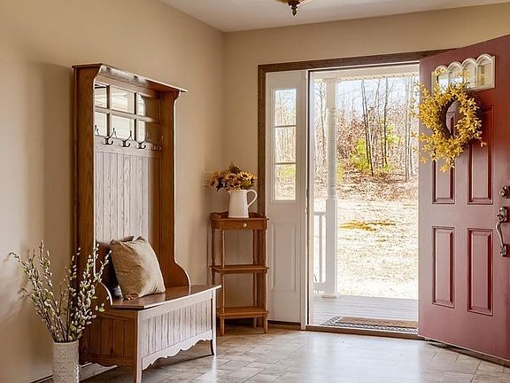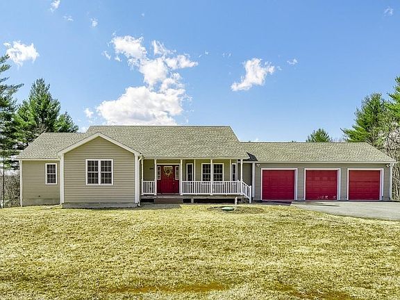 Beautiful front porch welcomes you home to this young contemporary style ranch. Property is situated on an estate lot with almost 6 country acres bordered by DCR land. Flexible floor plan, high ceilings, open kitchen and living area great for entertaining. The master bedroom has plenty of storage and a private bath. Lower level is partially finished with a GUEST SUITE that walks out to a very private back yard. Property features central air and solar panels and a THREE CAR GARAGE for all of your storage needs. There are many accommodations to allow for handicapped access.