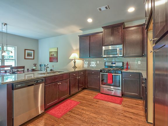 This Craftsman home offers 4 BR/3 BA, Oversized Dining Room, Bedroom on Main w/full Bath, Hardwoods on Main Level, Coffered Ceilings, Fence Yard, Tiled Backsplash, Fireplace, Wooded Lot, Oversized Closets, 14X25 Sized Family Room, Granite Counter Tops, 42 Cabinets, SS Appl., Tiled Master Shower w/Framed Shower Doors. HERS Rated Utilities less than $1500 p/year! HOA includes Lawn care. See Atlanta's Best Secret for City Convenience by bie Award Winner Watersedge Group!