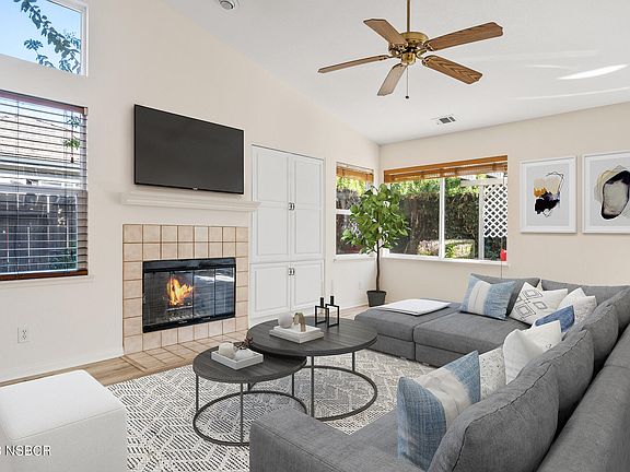 Ring in the New Year in a new home? You bet! This picturesque Meadow Ridge single-level cottage is tucked back from the lane under a majestic canopy of oaks and lush lawns. Once inside, the gorgeous new pale-toned floors anchor the home that offers a flexible modern floorplan blending living room with electric fireplace and high ceilings, family room with traditional fireplace and built-in entertainment center, freshly painted gleaming white kitchen including a dining nook, breakfast bar and pantry. The 4 bedrooms include a fabulous double-length lock-off bedroom with bonus square footage creating potential for home office, au pair, game room, great multi-generational bedroom, or mother-in law set up. Outside, find covered and open patios, lawn, flowers and room for dog run or chicken coop. Close to Riverview Park, Santa Ynez River, within award-winning school district and proximity to the boutique shopping, farm-to-table restaurants and outdoor activities that Buellton has to offer, approximately 30 miles to Santa Barbara and 16 miles to Vandenberg Space Force Base, this home is a commuters delight in a sought-after serene Santa Ynez Valley neighborhood.
