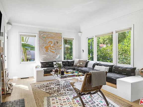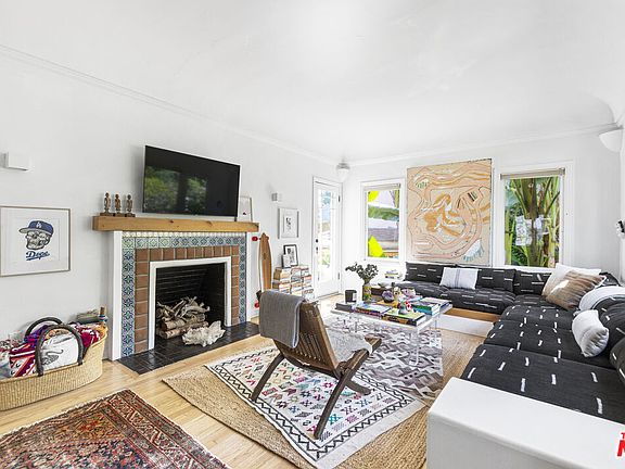 Welcome to this 1927 English Tudor sanctuary in a tranquil enclave of Pasadena, set behind the backdrop of the gorgeous San Gabriel mountains. Step beyond the lush front yard and porch into a living room brimming with natural light from oversized pocket windows. Here you will also find a gorgeous built-in sofa crafted of custom alder wood beams and African mudcloth cushions, refinished hardwood floors, original details and charming decorative fireplace complete with custom alder wood mantle, handmade Mexican Talavera and Lincoln Red tile. Tucked behind the living room is a sun-kissed side patio. Pass through an inviting archway to the adjoining formal dining room, effortlessly flowing into the impeccably designed kitchen with Carrara countertops, alder floating shelves, an enameled cast iron apron sink, convenient pot filler, automatic dog door, whole house water filtration system, and too many more charming details to mention. Down the hallway are three well proportioned bedrooms drenched in sunlight. Outside, the private backyard reveals an enchanting covered lanai, and mature landscaping that includes apricot, olive and palo verde trees, banana leaf palms, fragrant Mexican sage, an 80-year old camelia bush, dahlias, peonies, California wildflowers, calming lavender, bougainvillea, and several more species. Under the house is a one-car garage behind barn doors purposed currently as an art studio, complete with an electric car plug port. Aside from the street-to-street lot, private parking both behind house and driveway in front of the house, there is a rare amount of extra storage including a large attic with pull down ladder, California basement in the kitchen, and additional storage space under the home. Very conveniently located near the spirited shops and dining of Pasadena and nearby Altadena.