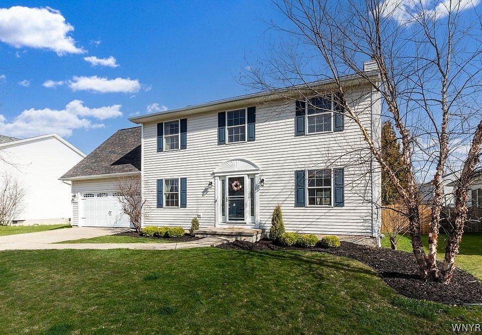 Your search has ended! This 4 BR 2.5 bath center entrance colonial offers a harvest of features & is located in one of the Island's most demand subdivisions. Foyer w/ceramic flooring. Inviting living room w/gas fireplace & built-in corner bookcase. Formal DR or office w/laminate flooring. Stunning kitchen w/maple cabinetry, recessed lighting, granite counters, breakfast bar, under cabinet lighting, pantry w/pull out drawers & includes, stove, refrigerator, dishwasher & microwave. Eating area has sliding doors to two tiered deck - one has retractable awning & other has sunshade. Fully fenced yard w/Amish shed & play set. Spacious primary suite has walk-in closet, sitting area & full bath w/luxury vinyl flooring & dual sink vanity w/granite counter. Basement rec room. Great location with direct access to bike path. Central air. 2nd floor laundry includes washer & dryer. Double wide concrete driveway. Maintenance free exterior. Nest WIFI thermostat, doorbell & smoke alarms. WIFI garage opener. Updates: Overhead garage door '22. Composite deck, garage man door '21. Roof (tear-off), HWT '19. Primary bath '15. Kitchen, front door, sliding door '14. Offers will be reviewed 4/17 at 1 pm.