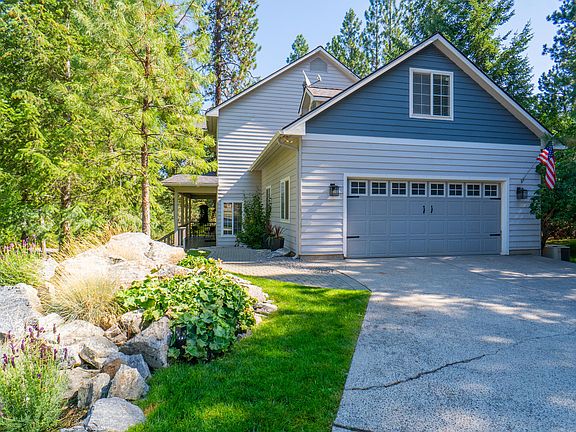 Fantastic opportunity to own this SECONDARY WATERFRONT home with Spokane River access. FREE from HOA's this home has many prime amenities including deeded Boat Slip on PRIVATE neighborhood ISLAND, low county taxes, outdoor firepit & storage shed and treed privacy with filtered RIVER VIEWS within 5 MINUTES of town. This bright & spacious home features an open concept floor plan on the main level. Kitchen comes with all APPLIANCES INCLUDED, new fixtures, formal & informal dining, large pantry & office nook, while the living room is highlighted by vaulted ceilings and the stacked stone fireplace. The MAIN FLOOR MASTER retreat has a fireplace,large ensuite bath & walk-in closet. Upstairs are 3 LARGE BEDROOMS and big bathroom. One bedroom has a private BALCONY & all have new paint/fixtures.