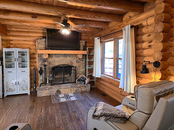 Gorgeous Log Cabin with Tiny Home & Workshop on 1.32 Acres in Bristol, VA! Welcome to this stunning & secluded 3-bed, 2-bath log cabin nestled on 1.32 acres in Bristol, VA — where rustic charm meets modern comfort! The main home features 1,626 sq. ft. of living space with 1,134 sq. ft. on the first floor & 492 sq. ft. upstairs. Step onto the covered front porch & through the double doors into the open floor plan, showcasing beautiful wood floors (new in 2022), log accents, & a soaring cathedral ceiling. The cozy living area features a stone wood-burning fireplace & ceiling fan, creating the perfect mountain retreat atmosphere. The kitchen, fully remodeled in 2022, is a showstopper — complete with granite countertops, custom cabinetry, a farm sink in the island, & stainless-steel appliances including a refrigerator, range, double ovens, & dishwasher. A wet bar area with a wine refrigerator, additional sink, & extra cabinetry makes entertaining a breeze. The primary bedroom offers warm wood floors, a ceiling fan, & a closet. The primary ensuite bath boasts ceramic tile flooring, an all-stone shower, a vanity, & a linen closet. Upstairs, you'll find a spacious second bedroom with wood floors, ceiling fan, closet, & two dormer storage areas, plus balcony access. The large loft area, also with wood floors, ceiling fan, & cathedral ceiling, could easily serve as a third bedroom or flex space. The second full bathroom includes ceramic tile floors, a vanity, a tub/shower combo with tile surround, & a washer and dryer with cabinetry above. Outdoor living is exceptional with a wraparound porch, including both covered and open deck spaces, perfect for relaxing or entertaining. Additional features include: all window treatments & Ring cameras convey, smoke alarms and CO2 wiring, crawl space foundation, roof (2018) and heat pump (2019). But that's not all!