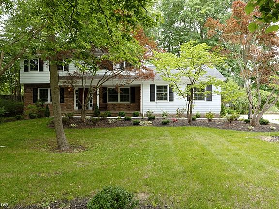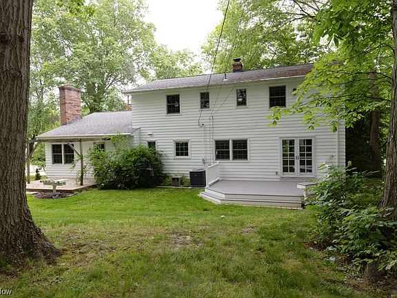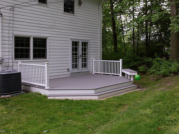 Welcome to the Heart of Aurora!! Upon arriving you will be greeted by professionally landscaped front yard with newer concrete driveway and walkway. Entering this beautiful center hall colonial with newer windows you will find the first level so inviting with large and bright Living Room with french doors that lead to a newer deck that overlooks the wooded backyard with 16x10 shed. Formal Dining Room for large family gatherings leads to newly remodeled Kitchen with Maple cabinets, granite countertops, ceramic floors, cook top, newer double wall oven, dishwasher and refrigerator. Cozy rustic Family Room with Fireplace, Laundry closet and access to paver patio great for grilling. Conveniently located half bath. Throughout the upper level newly refinished hardwood floors. Lovely primary bedroom with newer ensuite. Three additional bedrooms with one containing custom cabinetry/desk. Additional remodeled full bath. Full Basement with Recreation Room, Workshop and Storage area. Newer furna