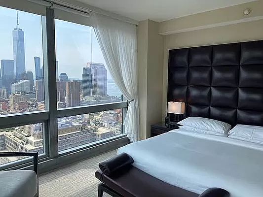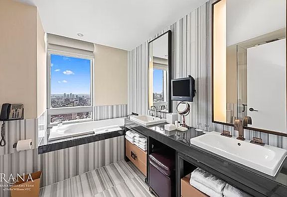 This unique condo-hotel suite is at the Penthouse level situated on the 41st Floor of The Dominick and has one of the most unique studio layouts in the building showcasing corner South and East exposures and views of Downtown Manhattan.