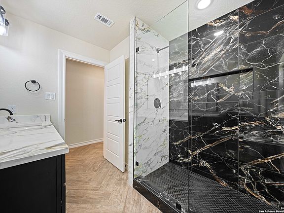 Welcome to your beautifully reimagined home in the heart of San Antonio! OPEN HOUSE SATURDAY, 18th from 11AM - 3PM!!! Perfectly located just minutes from it all. You'll love being 2 lights from Loop 410, 5 minutes to I-35 North for a quick trip to Austin or Dallas, and only 2 minutes to Highway 281 for easy weekends in New Braunfels. Whether it's shopping at North Star Mall, catching a flight at the airport, or enjoying entertainment like Pinstacks, Alamo Drafthouse, and so much more. Everything you need is right at your doorstep. Step inside and discover a home that feels brand new from top to bottom. Every detail has been renewed from the roof down to the foundation. You'll find gorgeous herringbone ceramic tile wood-look floors, striking custom countertops, and bathrooms with designer tile patterns that make every space feel unique. This home offers 4 spacious bedrooms, a flex room with its own closet, 3 full bathrooms, and a 1-car garage with workshop space all sitting on over a quarter acre, fully wrapped with a brand-new privacy fence. Energy-efficient windows, fresh paint inside and out, and thoughtful finishes throughout make this home as practical as it is beautiful. All that's left to do is move in and start living the lifestyle you've been waiting for.