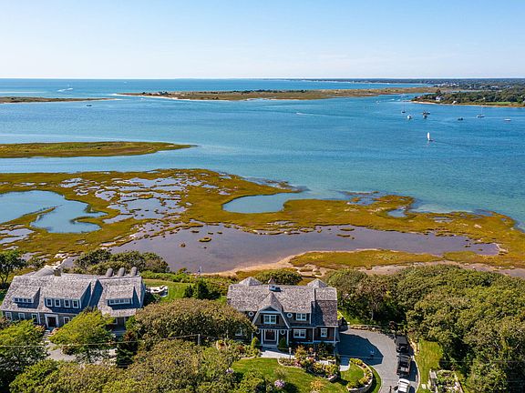 Set on nearly an acre in one of Chatham's most coveted enclaves, this Stage Island residence offers an extraordinary combination of refined craftsmanship and sweeping Stage Harbor views. The welcoming foyer opens to a dramatic living room with walls of glass framing the water, filling the space with natural light. A stylish kitchen with center island and dining area extends to an expansive deck, creating effortless flow between indoors and outdoors. The first floor also features a private ensuite bedroom, cozy den, and laundry area--providing flexibility for both guests and single-level living. Upstairs, three additional ensuite bedrooms include a serene primary suite with panoramic views, a spa-like bath, and spacious walk-in closet. With generous gathering areas and thoughtful details throughout, the home captures the essence of coastal luxury. The lower level adds over a thousand square feet of versatile living space with a large family room, fitness area, mudroom, and powder room. Designed with entertaining and everyday comfort in mind, the home also boasts extensive custom millwork, built-ins, and high-end finishes that elevate every detail. Outdoors, professionally installed Chatham blue granite walkways, a rear patio, and a built-in marine grill set the stage for alfresco dining and summer celebrations. Railings, landscaping, and window treatments throughout the home enhance both style and functionality. From sunrise over the harbor to evenings gathered on the deck, this property embraces its waterfront setting while offering modern ease. Stage Island's rare combination of privacy, natural beauty, and close proximity to town makes this a once-in-a-generation offering along Cape Cod's treasured coastline.