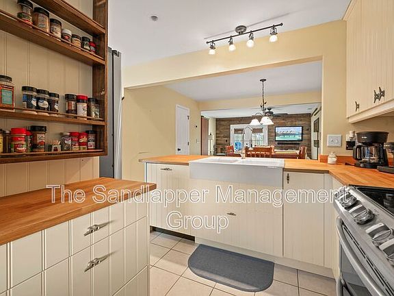 Inside, you'll find unique design touches including a butcher block countertop, wood accent wall, and laminate wood flooring that add warmth and character throughout. The inviting layout begins with a small foyer and built-in drop zone, leading into a bright kitchen with abundant cabinetry and natural light.