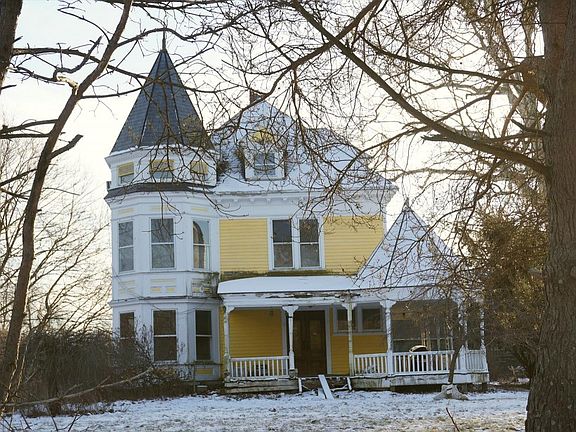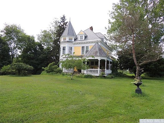 NEW TO MARKET - c1800 Queen Anne Victorian. Elegant front entrance complete with mahogany staircase, intricate original woodwork, original lead glass windows, oversize pocket doors to double parlor each with fireplace, original woodwork, crown molding... 5 bedrooms, 2 baths, butler's pantry, entire third floor is bedroom with bird's eye views and Queen Anne turret, wrap-around true to period Queen Anne covered porch, 5 acres and 2 amazing working barns... Should be $1M ... Owner is an advocate for animals and has made this the happy home of many... new owner will want to redo and bring out the presently hidden splendor.... very solid and elegant ... for the most part needs a major cleaning & new decor .... priced smartly at $397k