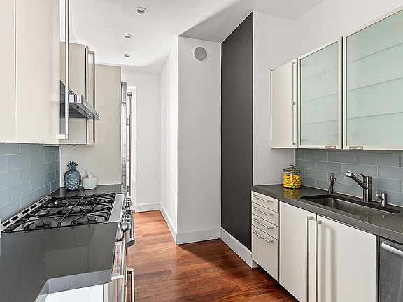 As the only duplex apartment at 246 West End Avenue, you enter Residence 2DE/3E through a long and gracious gallery. The living room with two exposures, East and South, as well as the separate windowed dining room, features 10'4" high ceilings throughout. The kitchen features cabinetry by Poggenpohl, a GE Cafe stove, and a Sub-Zero fridge.