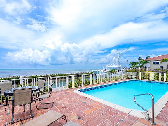Stunning Ocean front Florida Keys Vacation or retirement home. Main House has three bedrooms and 2 baths, boasts vaulted ceiling, open floor plan, Guest house is connected with a walk way, one bedroom one bath, New A/C unit, pool pump and filter replaced after Irma. Stove and Oven is Gas. Fenced in backyard, with elevated fresh water pool. The property faces the South, direct Ocean Front with 75ft concrete seawall/docakge. freshly painted interior, hardwood floors, tremendous gourmet island kitchen, sub-zero refrigerator, split bedrooms, Screened in Porch with Roll-Down Shutters,work out room, garage & under cover parking all with an exclusive Duck Key Florida Keys Living. Vacation rentals are allowed minimum 28 days.