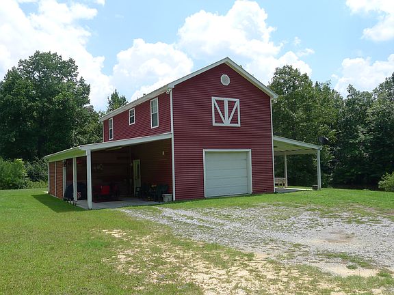 9.2 rolling acres. ADORABLE red 2-story BARN/LOFT APARTMENT with pond. Upper level apartment is 2 BR 1, Bath. Lower level is HUGE insulated heated/cooled workshop, has half bath. Patio on back. Covered patio on front, side carport. Your own dock for fishing in the pond. Wonderful neighborhood of Indian Hills. Adjoining property/home also offered for sale @ $375,000. BUY THEM BOTH for Package Deal of $499,800 - total acreage for combined for properties is 12.64 lush landscaped acres, fields, pond.