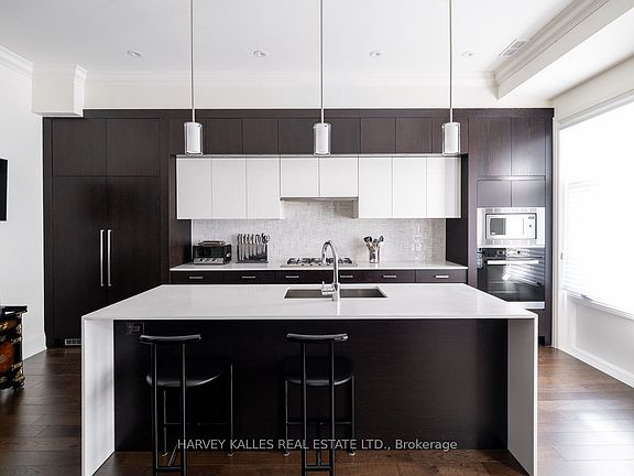 Nestled in the highly coveted community at Bayview & York Mills, this luxurious 4+1 bedroom,5-bath townhome blends modern comfort and sophistication. A private elevator services all three levels, boasting over 3,500 sq. ft. of upscale design, soaring ceilings, and an abundance of natural light throughout. Two private rooftop terraces offer the perfect setting for relaxing and entertaining under the stars. The thoughtful layout begins on the main floor with an inviting foyer, elegant home office, large powder room, and a well-purposed mudroom with convenient access to the 2-car garage. The 2nd level flows effortlessly from the contemporary living room showcasing a cozy fireplace and surround sound, leading to an open dining space suited for family gatherings, a 2nd powder room, and a chef's kitchen featuring a spacious breakfast area and generous balcony. The 3rd level master retreat is a serene sanctuary, including a stunning 7-piece ensuite, his-and-hers closets, and a private Juliet balcony, with two additional sunlit bedrooms designed for ample comfort. The lower level features an expansive home gym/rec space, a massive bedroom that doubles as a home theatre, a full bathroom, and laundry room. Fantastically located just steps from premier area amenities, and minutes from top schools, HWY 401, golf courses, and private clubs. A rare lifestyle opportunity in York Mills, where everyday luxury and convenience awaits!