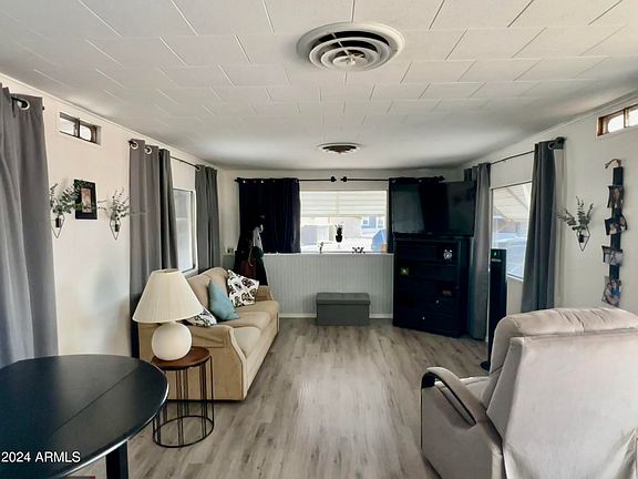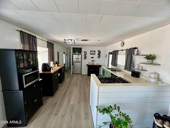 Welcome to your new home in the charming Trail Riders Ranch Park! This beautifully updated 1 bed, 1 bath mobile home offers a perfect blend of comfort and modern amenities. Enjoy the convenience of a tankless water heater installed just 1.5 years ago, and a brand-new heat/AC system only 5 months old. The kitchen is equipped with a brand-new refrigerator and gas stove, complemented by a kitchen island and hutches that convey with the home. Inside, New carpet in the bedroom and New laminate flooring in the main areas provide a cozy and stylish living space. For your peace of mind, the electrical box has been moved and updated to meet current codes too! You'll find two large storage sheds on the property, offering ample space for your needs. One can be utilized as additional living space or storage, while the other serves as a functional workshop. Relax on your private patio, perfect for outdoor dining or simply enjoying the fresh air. For your convenience, you have the option of using your indoor laundry or the community's laundry area if needed. Additionally, the home features large covered carport spaces, providing ample room for parking and protecting your vehicles from the elements.