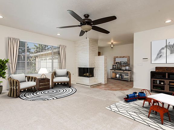 This wonderful single-story home features a large RV parking space, updated recessed lighting, smooth ceilings, ceiling fans in many rooms, a separate laundry room with a washer and dryer, updated kitchen cabinets and appliances including a range and oven, a dishwasher, a refrigerator and a countertop microwave, tile, laminate and carpet flooring and more. The double door entry opens to a tile entry leading to a spacious living room with a fireplace, and a volume ceiling with recessed lighting. The kitchen is updated and has a breakfast bar and an adjacent dining area with French doors leading to the enclosed patio. The roomy master bedroom offers dual closets with mirrored doors and a dual entry bathroom with a shower. This home is clean and turnkey and would make a great first-time buyer's home and would also accommodate a buyer who is looking for a home with large RV parking access. 3 bedrooms 2 updated bathrooms, 1627 sq. ft. of living space and sitting on a 6334 sq. ft. lot. Other features include a 2-car garage, block wall fencing with planters and a nice concrete pad and grassy yard in the back as well. Convenient to award winning schools, shopping, restaurants, parks, and just a short distance to the 118 and 23 Fwys.