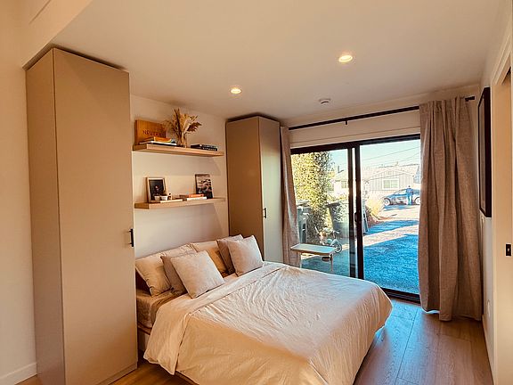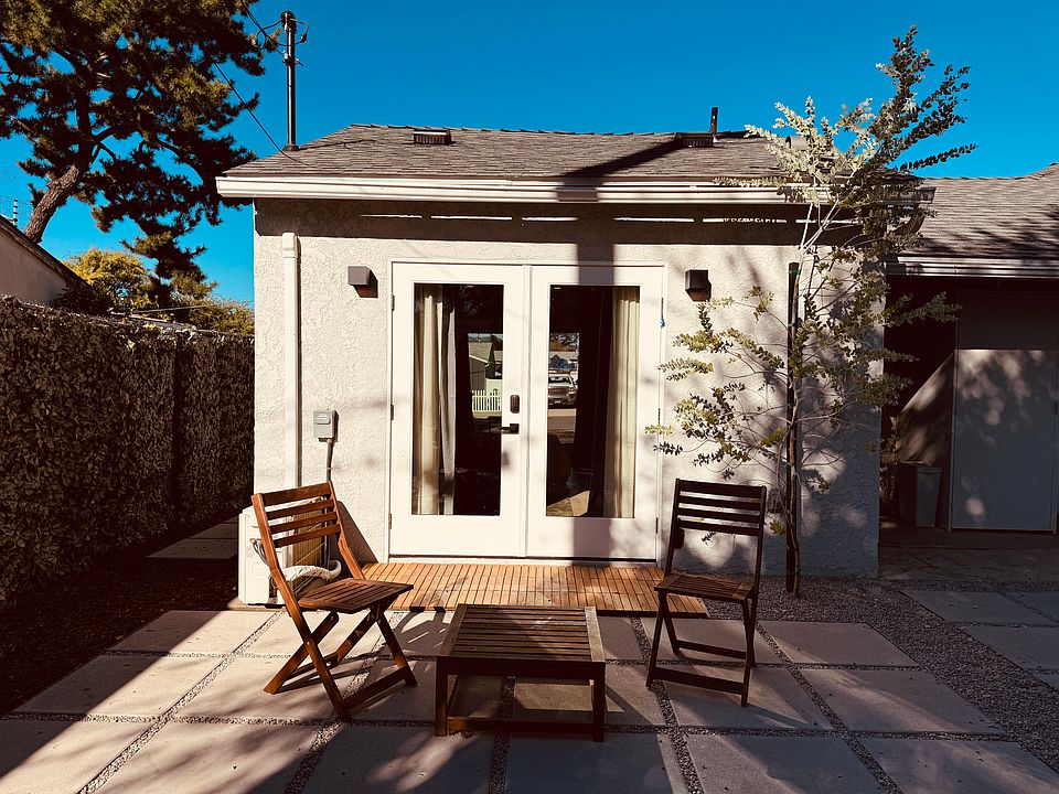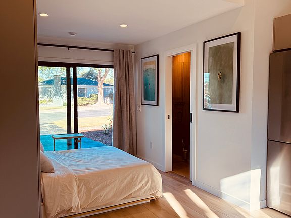 This is an attached ADU. 250 SF interior studio with a stunning 250 SF outdoor patio that is private. Shared washer / dryer with the main house.