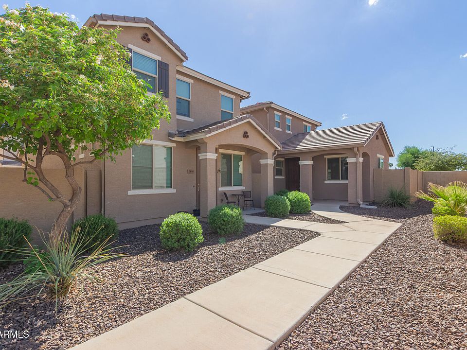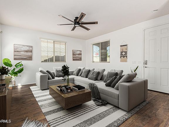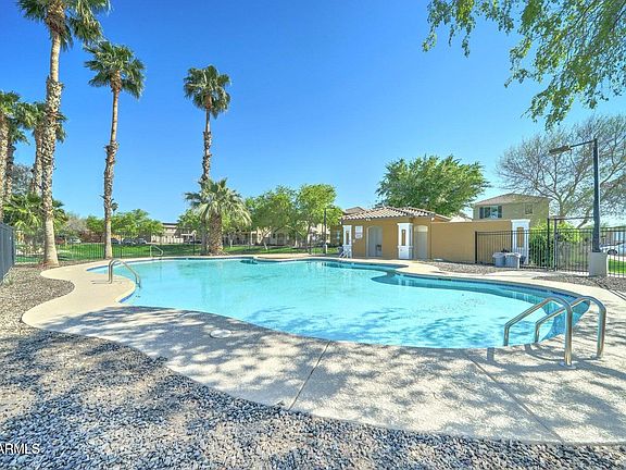 Welcome to this lovely 3-bedroom home in the Villages at Westridge Park! You're greeted by an inviting front patio perfect for morning coffee. Inside, you'll find a serene living room with modern wood look floors. The eat-in kitchen features granite counters, ample shaker cabinetry with crown moulding, recessed lighting, stainless steel appliances, a pantry, and an island with a breakfast bar. The primary bedroom boasts newer carpeting, an ensuite with double vanities, and a walk-in closet. Corner lot provides privacy along with a 2 car garage which can come with a golf cart! The gated community offers a pool, playground, and grass areas for walking the dog, all in an ideal location close to shopping, dining, entertainment and everything else Phoenix has to offer. Make it yours today!