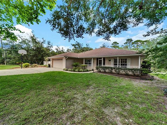 PRICE REDUCTION OF $16K for a quick sale so STOP LOOKING! This is your rural piece of paradise and an equestrian's dream for UNDER $500K. This COMPLETELY RENOVATED 4 bedroom 3 bathroom home boasts over 9½ acres of wooded land including a screen-enclosed HEATED POOL and SPA, 3 acres cleared and fenced for horses, RENOVATED kitchen and bathrooms, NEW wood-look tile flooring, NEW interior paint, NEW appliances, and more. You have to see it for yourself. You're greeted with a lovely front porch and enter into a spacious home with a split floorplan, great office space, formal dining room and large open kitchen/family room combo with a gas fireplace. Sliding doors lead you out to the beautiful lanai/pool area where you'll enjoy the privacy of the woods and nature in abundance. With a NEWLY RENOVATED master bath, it offers dual sinks and large walk-in closet. This land offers the opportunity for you to build a mother in-law suite, or even another home on the property. There's nothing like this on the market so don't miss out on this lovely home! All this conveniently located just a few miles from shopping, boat ramp, bike trail, and beautiful parks.