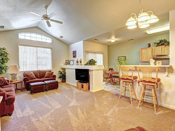 Beautifully kept condominium in an ideal location, adjacent to Mesa Mall, shopping, and restaurants, in the center of activity. This meticulously maintained condo, positioned on the second floor, features 3 bedrooms, 2 bathrooms, and a detached garage unit. With 1252 sq ft of space, it boasts vaulted ceilings in the main living areas, creating an open and inviting ambiance in the dining and kitchen spaces. The home has a large primary bedroom with vaulted ceilings and accent walls that provide character. A quaint covered patio with a storage closet provides room to relax outdoors. Recent upgrades include a new water heater, furnace, modern appliances, and high-quality carpeting throughout. This home, within an HOA that oversees all exterior maintenance, offers unparalleled care and is ready for a new homeowner.