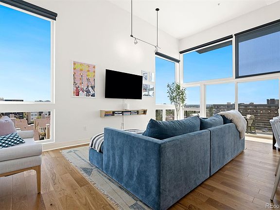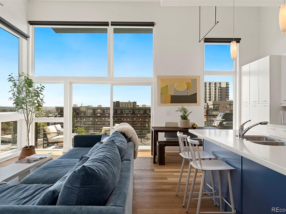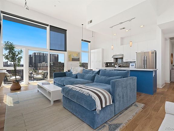 Welcome to this stunning LoHi penthouse, where 15 foot ceilings and floor to ceiling windows fill the home with natural light. The open kitchen, living, and dining area is designed for entertaining, featuring white quartz counters, a large island, gas range, and modern cabinetry. An expansive balcony extends the living space outdoors and is perfect for morning coffee, rolling out a yoga mat, grilling, or simply enjoying the fresh Colorado air.