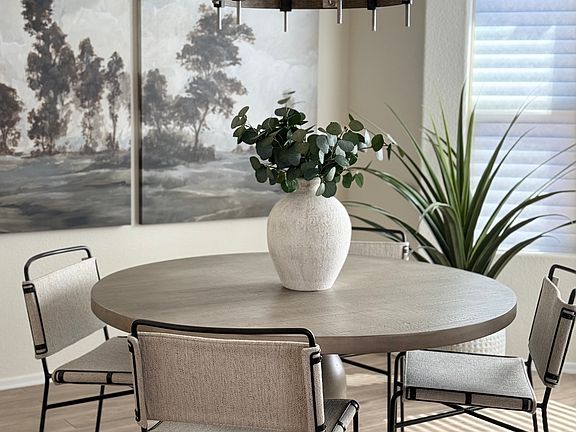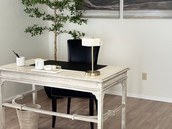 Beautifully, Newly Furnished with new tile flooring throughout and high ceilings. Newly painted interior. Has a large walk-in pantry and fully equipped kitchen. At home office space with accessories. Primary features a sitting area with a bay window and a walk-in closet. There are 5 bay windows throughout the house. House includes all creature comforts. Beautifully redone. Furnished patio with new grill. Large fully fenced backyard and quiet outdoor living with mountain views. This home is well maintained and is super clean. Low maintenance exterior.