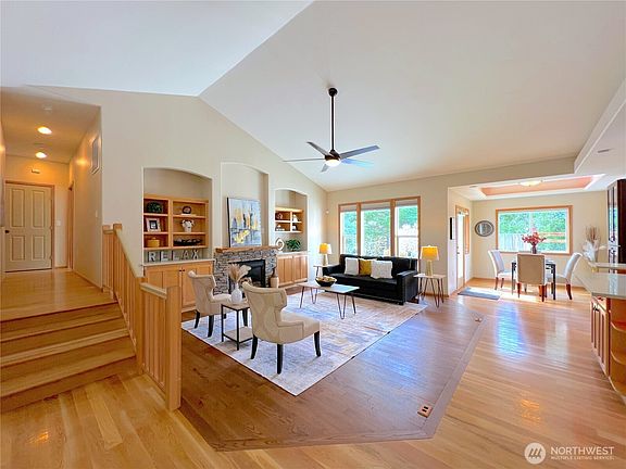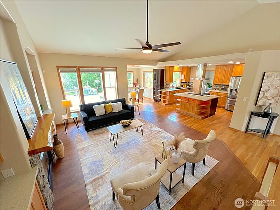 This stunning rambler wired for HS internet sits on an expansive lot. Easy, no-stair access to the main level for this 3bed/3.25bath home, & the fully finished daylight basement has its own kitchen and entrance. Room to entertain on the multi-level deck outfitted with a hot tub, fire pit, and yard space with sprinkler system. Primary suite includes a 5-piece bath, walk-in closet & private door to deck. The remodeled kitchen & family room sports a gas fireplace, hardwood floors, quartz counters & new appliances. Extra rooms can flex for office/gaming space. Don't miss the large, finished garage, generator hook-up, new carpets, central vacuum; or the massive 30’x50’ heated shop with room for auto/wood working, your RV & other outdoor toys.