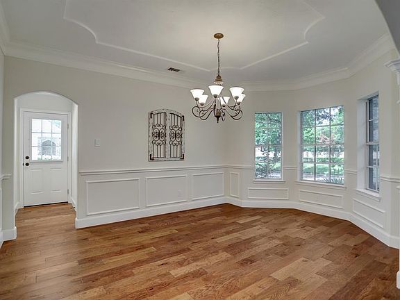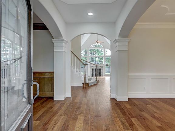 Custom Builders Personal Home on an oversized lot, located in Northampton Estates, just down the street from the Willow Creek Golf Course. This home features high ceilings, split formals & an open concept floorplan, a Spacious island kitchen, with a breakfast bar, custom cabinets, granite counters, a gas cooktop & high-end double ovens. Gleaming wood floors run through the entire ground floor. Direct vent fireplace surrounded by picture windows that fill the 2-story den with cheerful light. Custom millwork, crown molding & 6-inch baseboards enhance its overall appeal. Large Primary bedroom down with bathroom that includes double sinks, vanity, separate shower & whirlpool tub. Gameroom up plus flex room which could be a media room or an extra bedroom. Excellent curb appeal with convenient porte-cochere by the side door. mature trees. Roof & Tankless water heater replaced in 2021. Whole house Hepa Filter, MERV 13+Air cleaner. House painted 2022. Never flooded.