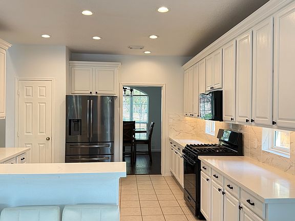 Step inside to soaring high ceilings, a bright open floor plan, and stylish finishes throughout. The chef's kitchen boasts a brand-new quartz countertop, luxury chandeliers, and comes with a refrigerator, breakfast table with chairs, and formal dining table with chairs.