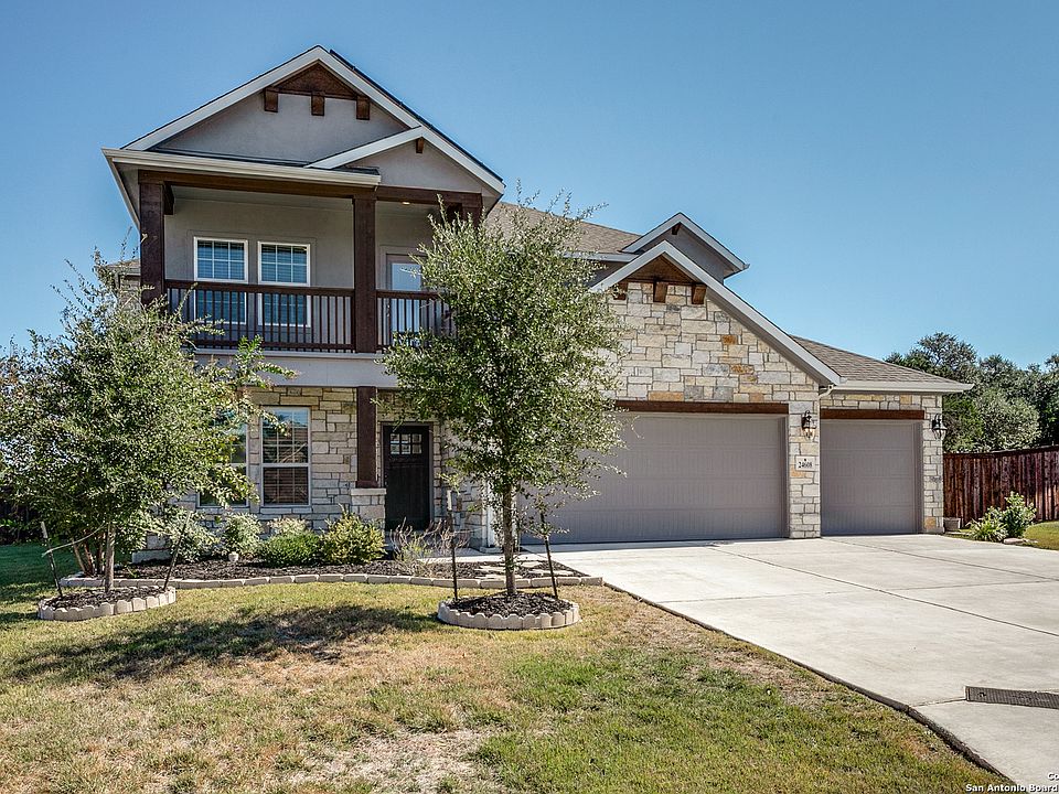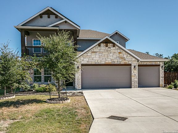 ***Open House 11/01 11am-1pm***Nestled at the end of a tranquil cul-de-sac in the prestigious Cibolo Canyons community, this exquisite 2,900 sq. ft. single-family residence offers unmatched privacy and space. Positioned on the largest lot in the neighborhood, the home enjoys serene greenbelt views with no rear neighbors and open green space to the side ideal for peaceful living and entertaining.  Step inside to discover a thoughtfully designed open-concept layout featuring:  * A sunlit living area anchored by a cozy fireplace  * A dedicated home office for remote work or study  * A sleek, modern kitchen with ample cabinetry and natural light  * A versatile upstairs loft and media room for relaxation or play  The luxurious primary suite boasts dual custom closets, while three additional bedrooms and 3.5 baths provide comfort and flexibility for family and guests.  Car enthusiasts will appreciate the oversized three-car garage, with the third bay fully equipped with A/C, bright task lighting, and space for detailing or mechanical projects. Outdoors, the covered patio includes built-in gas lines-perfect for a grill or fire pit setup-and a sturdy wood shed on a concrete pad offers secure storage. Brand New Water Softener and PAID Solar panels.   Located just one mile from the renowned TPC Golf Course and surrounded by scenic walking and hiking trails, this gated haven blends upscale living with nature's tranquility. Experience the perfect balance of luxury, functionality, and outdoor charm-all in one exceptional San Antonio home.   *** Buyer and Buyer's Agent to verify ALL information***