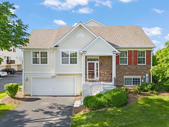 Welcome to this beautiful and thoughtfully upgraded 2 story end-unit townhome located just minutes from downtown Plainfield. The main floor features polished hardwood floors with a fully remodeled, custom-designed kitchen showcasing professionally crafted cabinetry with granite countertops. The kitchen island with additional seating provides a perfect gathering space for casual dining and entertaining. The inviting living room is highlighted by a custom-built brick electric fireplace, accented with a solid hardwood mantle creating a cozy and stylish focal point. You'll find modern fixtures throughout the home and spacious bedrooms containing luxury vinyl plank flooring for a clean, contemporary look. The primary bedroom features a walk-in closet and en-suite bathroom with custom cabinetry, dual sinks with granite counter tops and remodeled shower. The lower level features a spacious family room great for leisure or entertainment and has an additional carpeted bedroom. The lower level has direct access to the attached 2 car garage. The balcony outside is perfect to take in the tranquil water views. This move-in ready home offers the perfect balance of modern upgrades, scenic surroundings, and unbeatable proximity to all that downtown Plainfield has to offer. Schedule your private showing today. Property is NOT for rent.