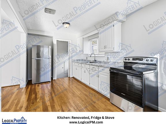 Fenced backyardUpdated bathroomWhite modern vanityHardwood floorsCentral air conditioningLarge windowsComfortable bedrooms