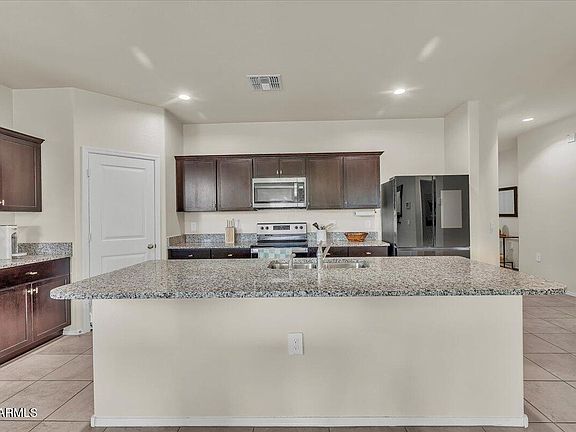 Welcome to your move-in ready Buckeye retreat, located in the popular Estrella Vista community! This 4-bed, 2-bath home combines modern comfort with everyday functionality. Enjoy an open floor plan with neutral tones, tile flooring, and natural light throughout. The kitchen features stainless steel appliances, rich espresso cabinets, a spacious island, and a walk-in pantry. The primary suite includes dual sinks and a generous walk-in closet. Out back, relax under the covered patio and enjoy a low-maintenance yard ready for your personal touch.