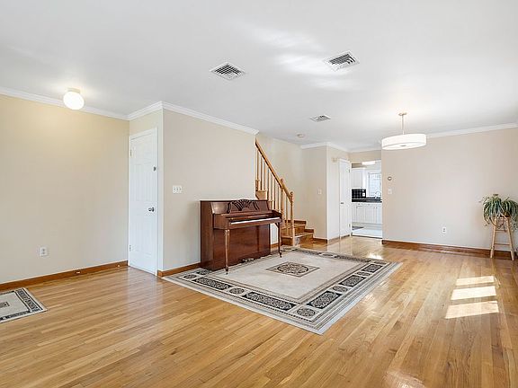 Cheery 3BD 3.5BTH all brick home uniquely features a full bathroom on every level. This freshly painted duplex is located on an ideal street in Fort Lee. Staircase entryway leads to the living area featuring oak wood floors, and polished molding throughout. White cabinetry in the kitchen, SS appliances, and access to the back deck complete the back of the house. Powder room included on 1st floor. Master bedroom has unique two-story windows, 2 separate closets, and en suite bathroom. Two add'l spacious bedrooms on the 2nd floor share a hallway bathroom with a lovely skylight illuminating the hallway. The fully finished walkout basement includes a full bathroom, W/D room, and walkout to the manicured and expansive backyard. Home is in desirable, quiet area of Fort Lee. Garage and driveway parking spots. Immediate access to major roadways and walking distance to shopping area and delicious local restaurants.