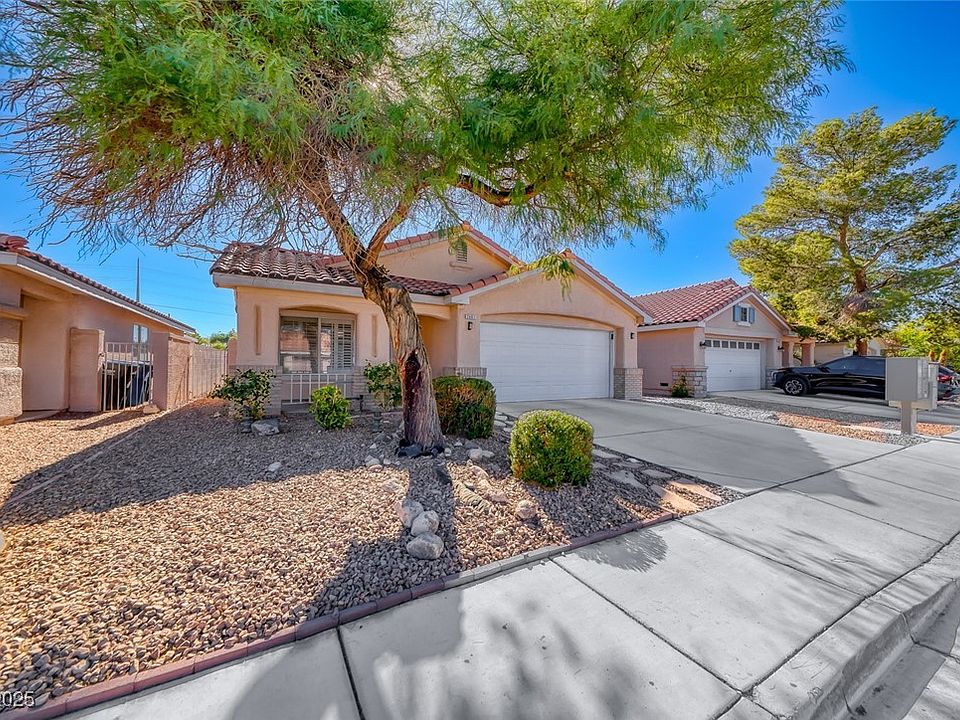 Nestled in the highly sought-after Pebble Creek community, this beautifully maintained 3-bedroom, 2-bath single-story home offers comfort, style, and convenience. Recently updated with luxury vinyl plank flooring the home features an inviting open floor plan with a spacious living room and a cozy fireplace in the family room. The kitchen includes an island and an adjoining dining area perfect for everyday living or entertaining. Enjoy outdoor relaxation in the generous fully fenced backyard. Pebble Creek residents enjoy access to a beautifully landscaped community park and playground. The neighborhood is ideally located near Freeway 215, the Green Valley District shopping center, and several grocery stores, offering easy access to dining, shopping, and entertainment.