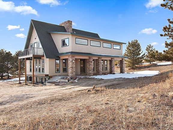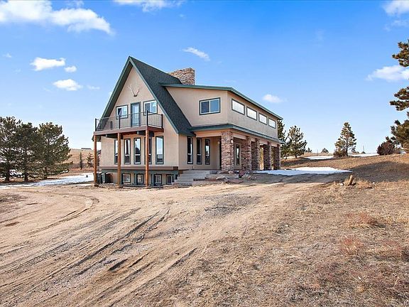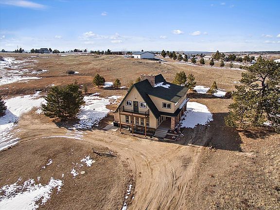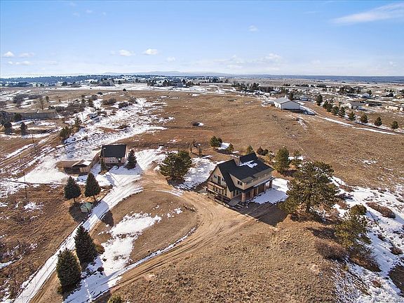 Come enjoy what Colorado is all about. This beautiful 10 acre property showcases a Chalet style home featuring 3 bedrooms, stunning great room with a wall of windows, also a non conforming bedroom and bath in basement. Kitchen offers slab granite, built in desk, and all appliances. Additional features are brand-new carpet, fresh interior and exterior paint, new roof(s). BONUS second apartment/studio/office completely separate from the house that also has heat, 3/4 bath, kitchenette. No HOA Close to Parker and Franktown.