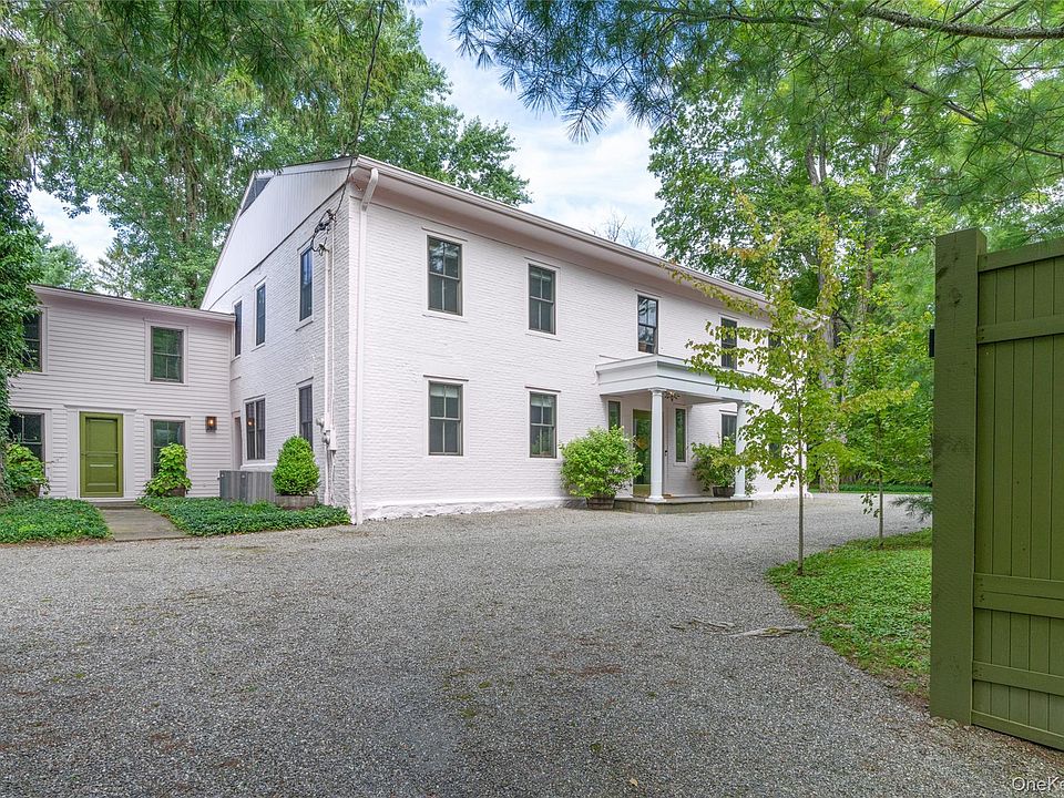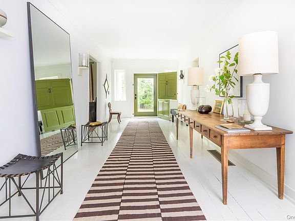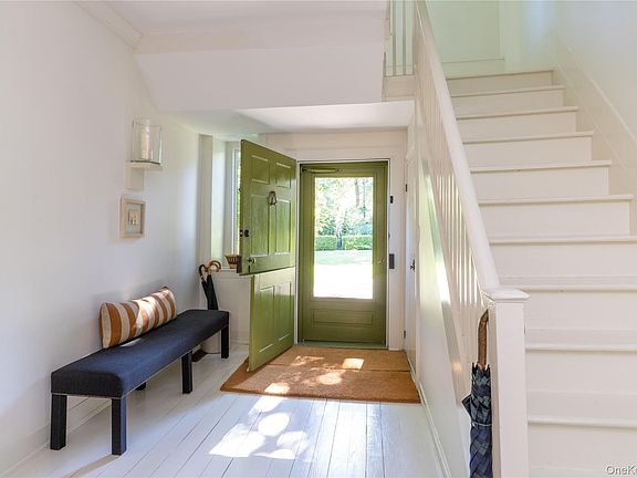Nestled in the quaint hamlet of Clinton Corners, this rare and tasteful 18th-century Georgian stone house offers classic proportions and timeless charm on beautifully established, landscaped grounds. The home seamlessly blends original architectural details—including preserved woodwork, deep sill windows, six fireplaces, refinished floors, and classic Georgian symmetry—with modern updates such as central air, new windows, and a dramatic wall of windows overlooking the terrace. A 10-foot-wide hallway runs the length of both floors, with Dutch doors at either end, leading to well-appointed rooms including a formal living room, dining room, TV/family room, and a large kitchen—all with fireplaces—plus a full bathroom on the main level. The attached cottage adds functionality with a mudroom/laundry area, second kitchen, sunroom, studio space, and an additional bedroom and bathroom on the upper level. In the main house, the second floor features four spacious bedrooms and two full bathrooms. Surrounded by mature trees, high fencing, and rolling countryside, this meticulously maintained property is just 10 minutes from Millbrook, 20 minutes from Rhinebeck, and close to all that the Hudson Valley has to offer—making it the perfect full-time residence or idyllic weekend retreat.