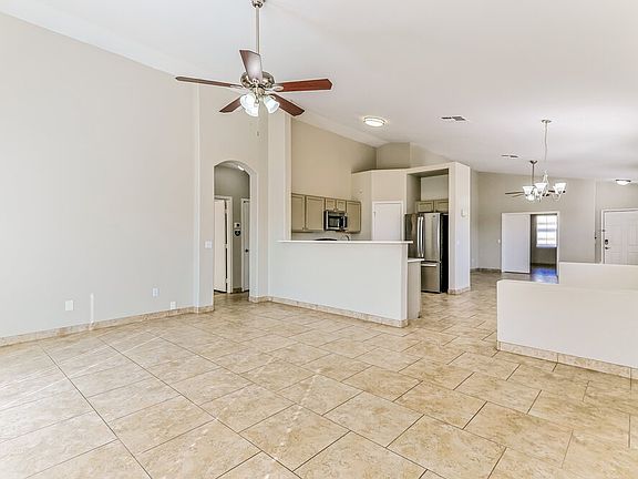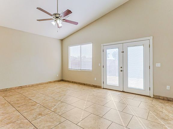Enjoy the convenience of the single-story layout in this three-bedroom, two-bath rental home in Apache Junction. Step through the shady side porch to enter the living room, which offers tile flooring, two windows, and a lighted ceiling fan. Nearby, the spacious eat-in kitchen includes a pantry, quartz countertops, and stainless-steel appliances. Past the kitchen, there's a large family room that's perfect for entertaining and includes a door that opens to the patio in the fenced-in backyard. The master bedroom boasts a ceiling fan and sliding-glass doors to the patio plus a walk-in closet, linen closet, and adjoining laundry room. Its en suite bathroom features an oversize garden tub. Out front, there's an attached two-car garage. Schedule a tour today.