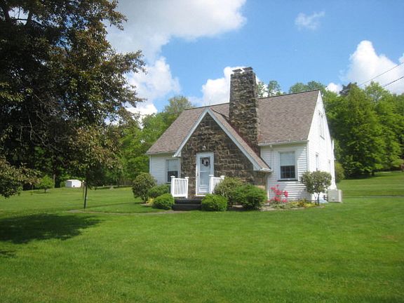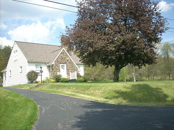 Extremely well kept Cape Cod home on 2+ acres. Good floor plan makes for nice sized rooms. Kitchen features good counter & cupboard space. Large living room/dining area features stone fireplace. Hardwood floor in living, dining and 1st floor bedroom. This picturesque stone front home has circular drive with tons of parking on its own private road (old 322). Over-sized 2 car garage with workshop above + new utility shed. Dual water source - old spring system to water garden, wash cars, etc. can be switched from new well with turn off valve. Many recent updates(see docs for list).