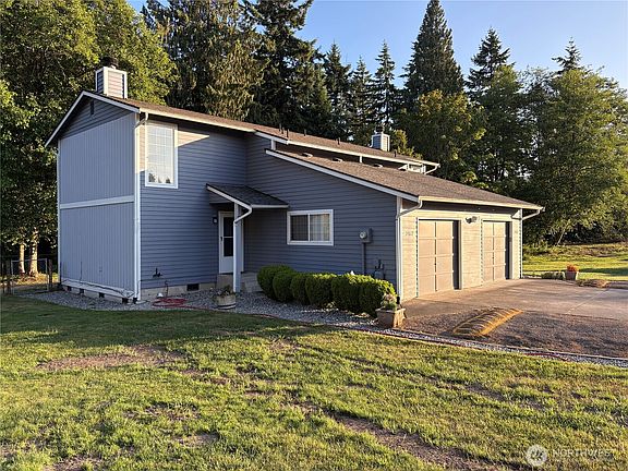 Rare duplex opportunity on 1.35 acres in peaceful dead end cul-de-sac! Both 1,200 Sq ft units feature 2 beds, 1.5 baths, fireplaces, updated flooring and individual garage space. Enjoy newer lighting, blinds, appliances (microwave, dishwasher), plus washer/dryer setups. Live in one unit, rent the other—rents are currently below market, offering immediate income and upside. Each unit has it's own shed, fenced yard, and room for RV parking, territorial views, and room for hobby space or gardening. Room to build a shop etc! Conveniently located near shops, restaurants, and under 40 minutes to JBLM. Don’t miss this turn-key investment-home combo!