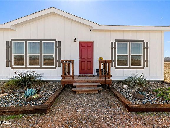 This beautiful home offers a welcoming country feel with many upgrades throughout. Situated on nearly two acres, it's move-in ready and perfect for comfortable living. Interior features include custom alder cabinets, a mix of vinyl, tile, and carpet flooring, and efficient heating and cooling. The exterior features durable Hardy board siding, a private back deck with beautiful views, and a fun fire pit area ideal for gatherings. Outside, you'll also find a lovely yard, an adorable chicken coop, a dog run, and plenty of space for family, pets, and outdoor enjoyment. Mostly fenced and ready for you to make it your home! The solar is with APS they credit $50.00 per month if you want to keep it.