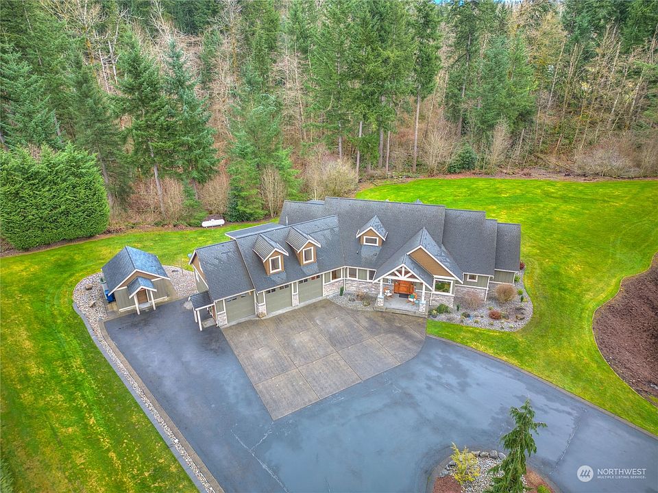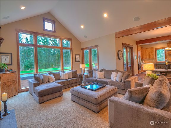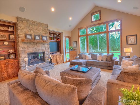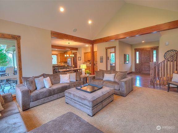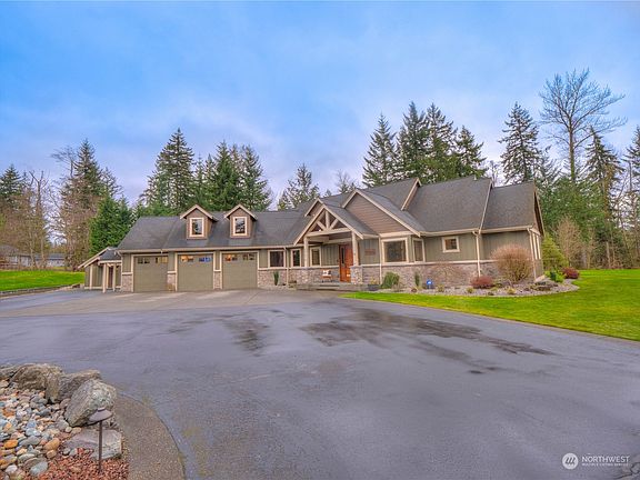 Custom 3,440SF home on 5 acres with no detail overlooked. Primary bedroom on main w/ 5-piece bath, heated Travertine floor, walk in tile shower, and huge walk thru closet. Chef’s kitchen w/ custom Alder cabinets, slab granite counters, 5-burner gas cooktop, large pantry, & separate coffee/wine bar. Great room concept w/ large dining area and vaulted ceilings, gas fireplace and custom built-ins. French doors lead to covered back patio & hot tub. 2 large bedrooms up w/ shared bath. Huge bonus room up w/ an additional finished room for hobby or 4th bedroom. Forced air furnace w/ heat pump & AC (new in 2018). 200SF detached flex room (gym or 2nd office) with heat/power/wifi. Gated drive. Xfinity connected. Too many details to list –A MUST SEE!